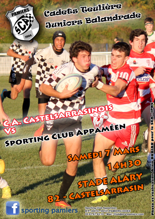 Le samedi 07 mars 2015 de 14h30 à 16h Lieu : STADE ALARY - Rte de Toulouse 82100 CASTELSARRASIN