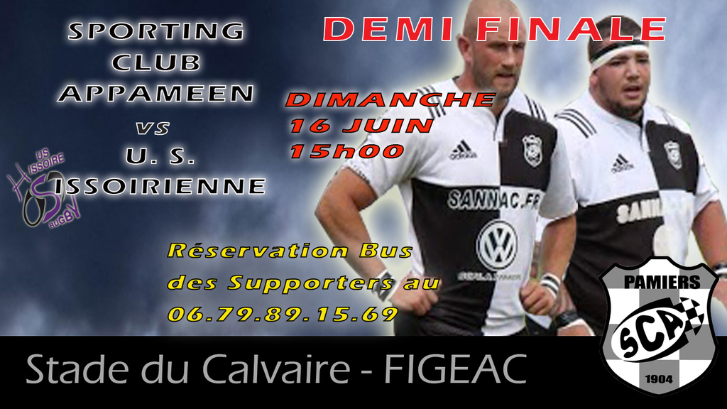 Supporters. L'amicale des supporters organise le déplacement pour la demi-finale. Contacter rapidement pour tout renseignement, Jacques : 06 72 09 06 77 et Patrick : 06 79 89 15 69.