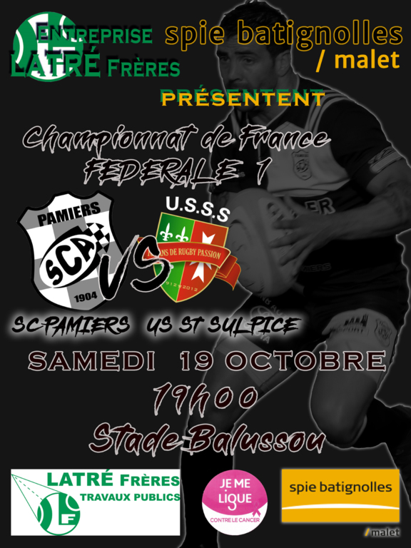 Où ? Stade Pierre Balussou à Pamiers. Quand ? Ce soir à 19 heures. Arbitre de champ : M. Frédéric Masse. Arbitres de touche : MM. Damien Sabathier et Florent Perisse Gonzalez. Représentant fédéral : M. Michel Dupuy. Superviseur fédéral : M. Claude Barrabies.