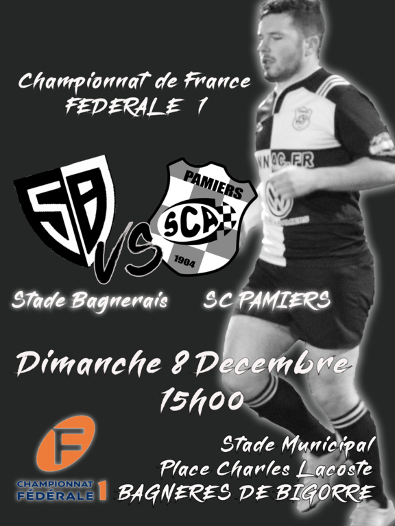 Où ? Stade municipal à Bagnères-de-Bigorre. Quand ? Dimanche à 15 heures. Arbitre de champ : M. Ludovic Sacarot. Juges de touche : MM. Hugo Lavigne et Stéphane Ducos. Représentant fédéral : M. Pierre Desclaux. Superviseur fédéral : M. Marc Daroque.