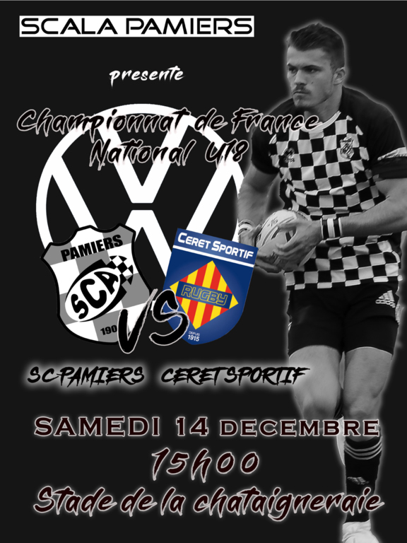 Ce samedi, tous les terrains de Pamiers étant mis en protection à cause des fortes précipitations, nos juniors joueront au stade de la Chataigneraie qui est maintenu disponible de manière exceptionnelle (faute de quoi, ce match ayant déjà été reporté, nos jeunes l'auraient règlementairement perdu.