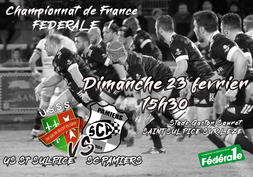 Où ? Stade Gaston Sauret terrain A à Saint-Sulpice-sur-Lèze. Quand ? Cet après-midi à 15 h 30. Arbitre de champ : M. Cyrille Le Gall. Arbitres de touche : MM. Nelson Desbois et Joachim Regis. Représentant fédéral : M. Laurent Sola. Superviseur : M. François Godin.