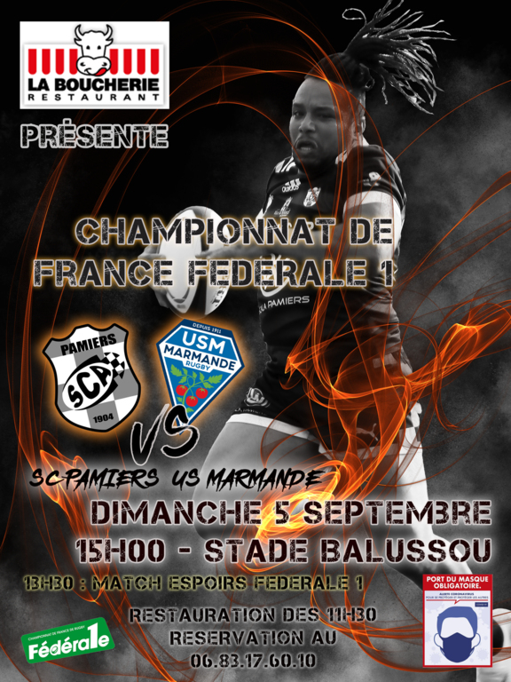 (M-T : 21-16). Arbitre de champ : M. Anthony Lac (Provence Alpes Côte d’Azur). Arbitres de touche : MM. Damien Jalabert et Fabien Soucaret. Représentant fédéral : M. Philippe Bernadet. Coach (Fédéral 1) : M. Hervé Chouchana. 1200 spectateurs.