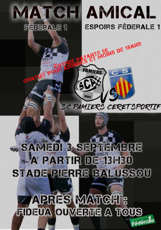 En lever de rideau, les Espoirs rencontreront, eux aussi, leurs homologues de Céret. Ce groupe est complètement chamboulé par rapport à celui qui avait porté les couleurs appaméennes jusqu’en quart de finale la saison dernière. Entre joueurs atteints par la limite d’âge, ceux qui se font une place en équipe fanion, les juniors qui montent et les nouveaux, les entraîneurs doivent quasiment repartir de zéro avec un groupe très renouvelé. Ce match servira de mise au point avant la reprise du championnat.