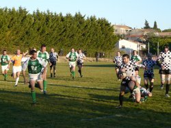 Notre équipe fanion, malgré de très belles intentions, encaissait deux essais sur contre de la part d'héraultais largement à leur portée. Mais de trop nombreuses fautes ne nous ont pas permis de remonter au score.