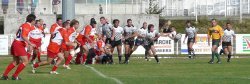 Après que la réserve ait bêtement laissé le gain du match aux visiteurs (18 à 16), notre équipe fanion se faisait submerger dans le premier quart d'heure qui affichait un terrible 22 à 0 pour les rouge et blanc.