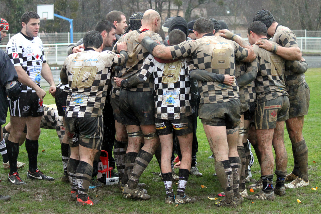 L'équipe une rentrait sur la pelouse sous une pluie soutenue et sur un terrain déjà bien "travaillé" par ses prédecesseurs. Ces conditions ont imposé le jeu auquel tout le monde s'attendait : celui des avants. A ce jeu nos damiers n'ont laissé aucune opportunité aux bleu et rouge qui, malgré une belle vaillance, s'inclinaient sur le score de 14 à 3.