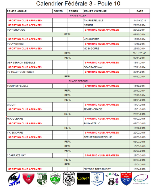 CALENDRIER SENIORS 2014-2015