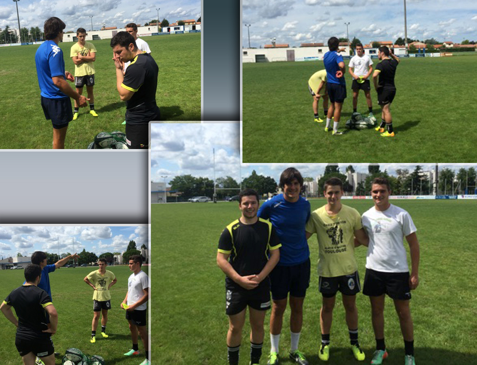 Trois buteurs du S. C. A. ont été reçus ce matin par David SKRELA sur les installations de Colomiers. L'international a longuement montré et expliqué à nos joueurs les "ficelles" du métier de buteur. Damien BENAZET, Pierre MARTIGNOLES et Alban CASENAVE sont revenus du club à la colombe avec de la technique supplémentaire, ce qui ne nuira sûrement pas à leur talent naturel.